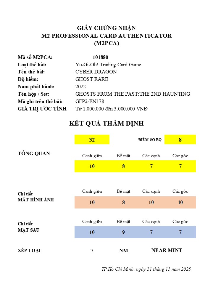 M2PCA - M2 PROFESSIONAL CARD AUTHENTICATOR101880 M2PCA – CYBER DRAGON – GHOST RARE – GFP2-EN178 Đăng vào 20/11/2025 bởi system 101880 M2PCA – CYBER DRAGON – GHOST RARE – GFP2-EN178