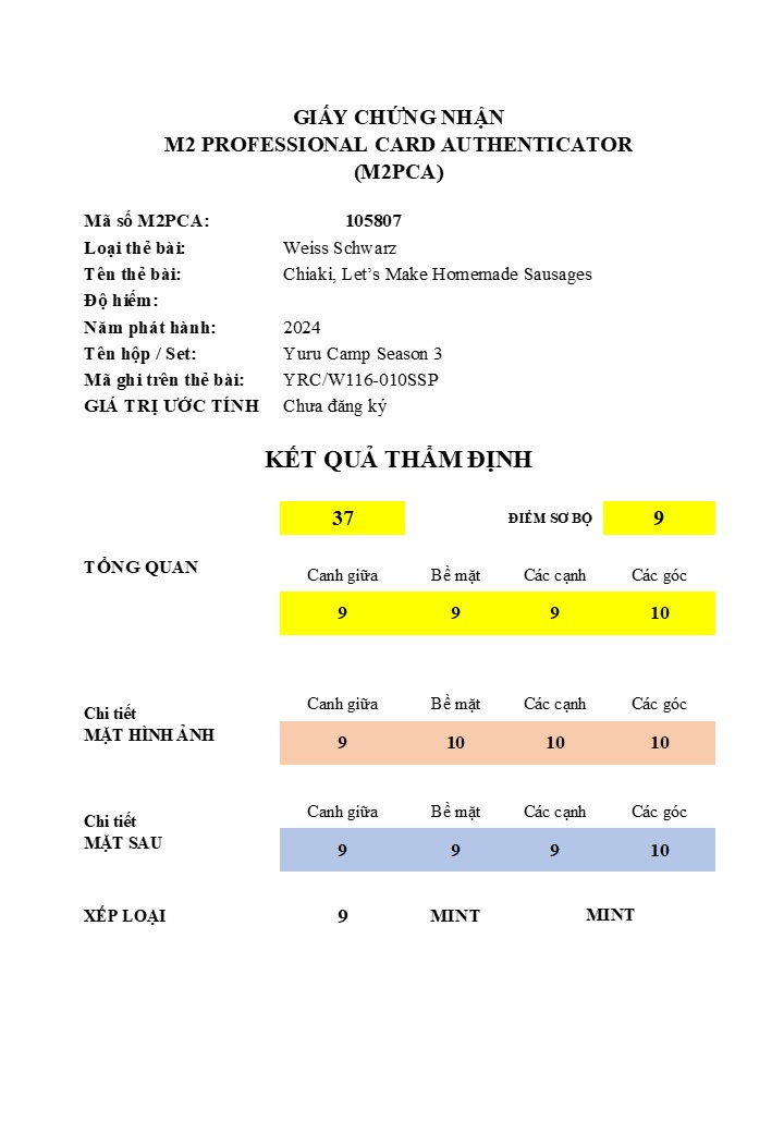 M2PCA - M2 PROFESSIONAL CARD AUTHENTICATOR105807 M2PCA – Chiaki, Let’s Make Homemade Sausages – YRC/W116-010SSP Đăng vào 11/03/2026 bởi system 11 Th3 105807 M2PCA – Chiaki, Let’s Make Homemade Sausages – YRC/W116-010SSP