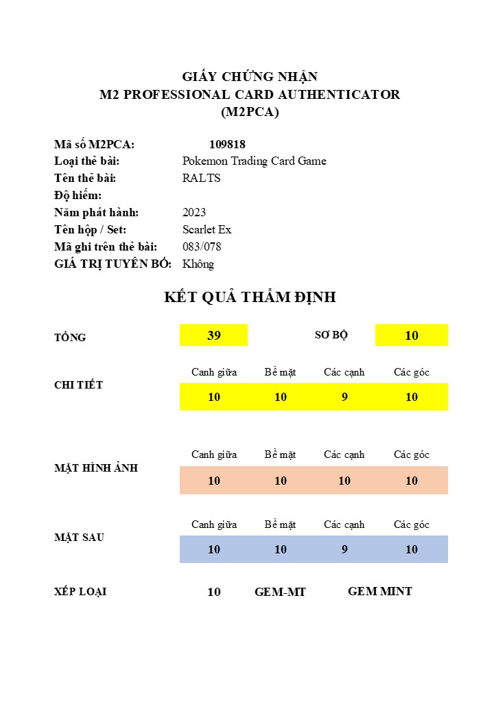 M2PCA - M2 PROFESSIONAL CARD AUTHENTICATOR109818 M2PCA – RALTS – 083/078 Đăng vào 26/11/2024 bởi system 26 Th11 109818 M2PCA – RALTS – 083/078