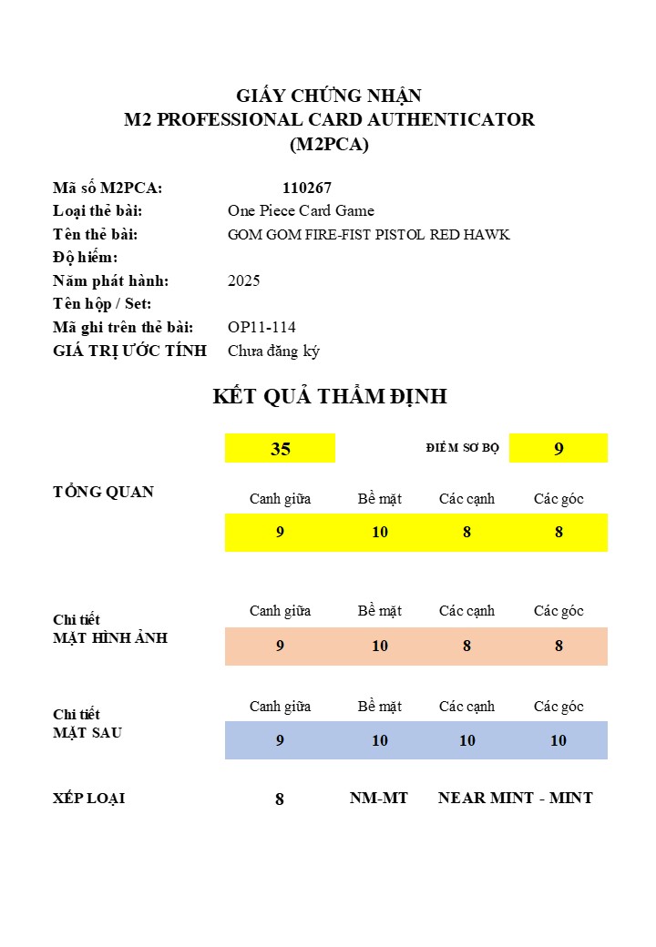 M2PCA - M2 PROFESSIONAL CARD AUTHENTICATOR110267 M2PCA – GOM GOM FIRE-FIST PISTOL RED HAWK – OP11-114 Đăng vào 10/01/2026 bởi system 110267 M2PCA – GOM GOM FIRE-FIST PISTOL RED HAWK – OP11-114